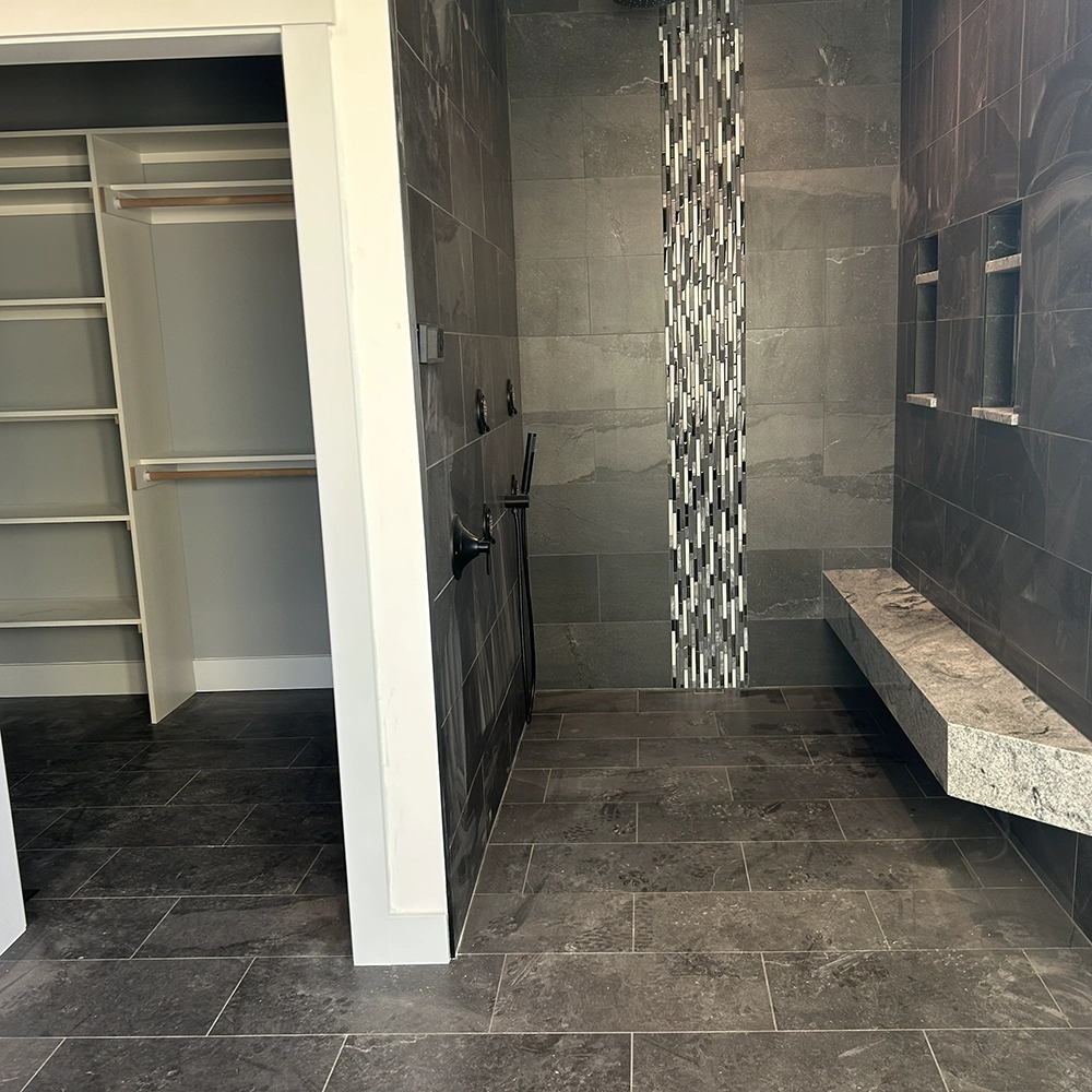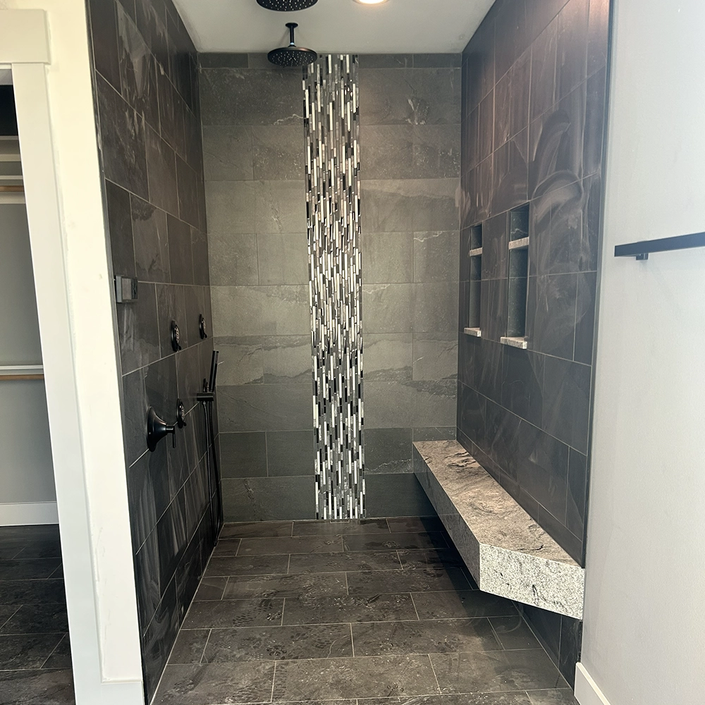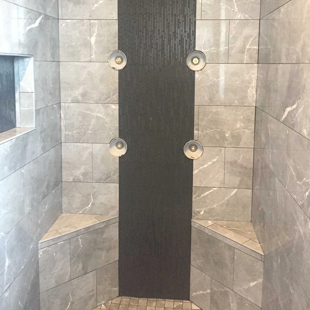 Porcelain tile installed throughout the shower
